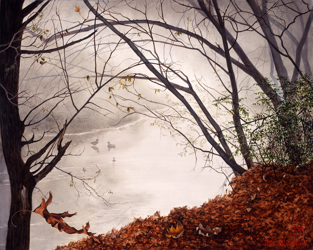 The pin oak leaves beginning to catch the headwinds of the coming weather.