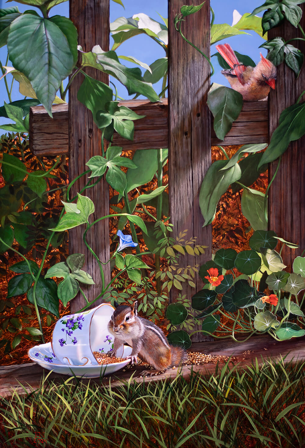 They bid me to go find a teacup and fill it with seed and set it up on the edging just to see…