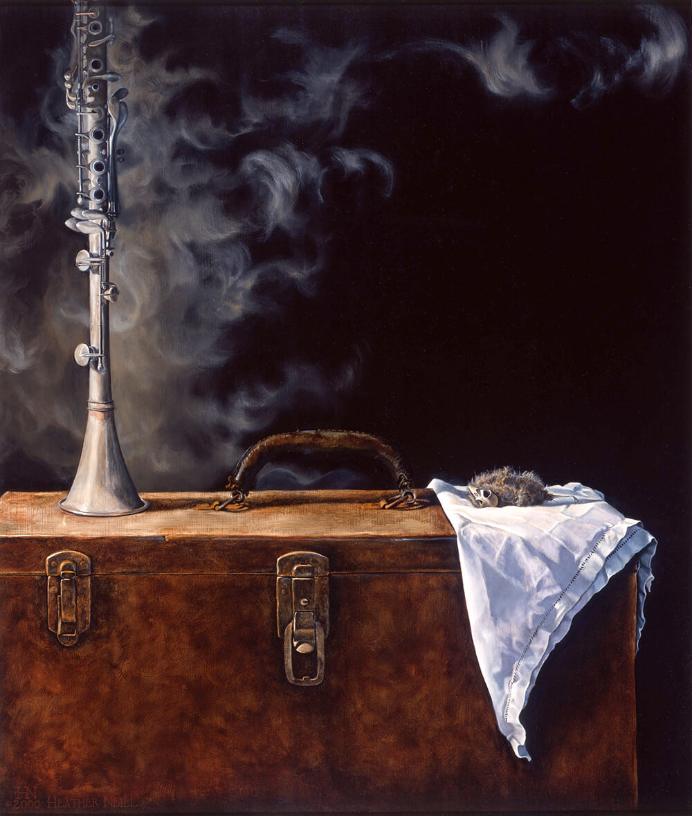 on the white linen napkin. With the long forgotten clarinet won by the highest bid on a Stoner’s