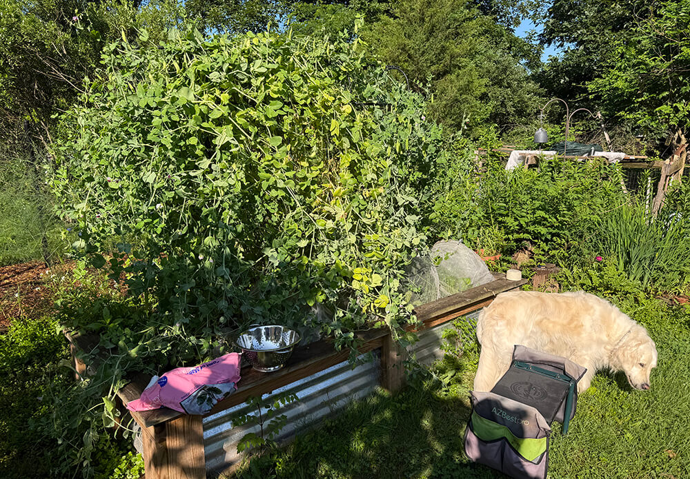Across the walkway were the bush peas which you will recognize as the backdrop for this painting.