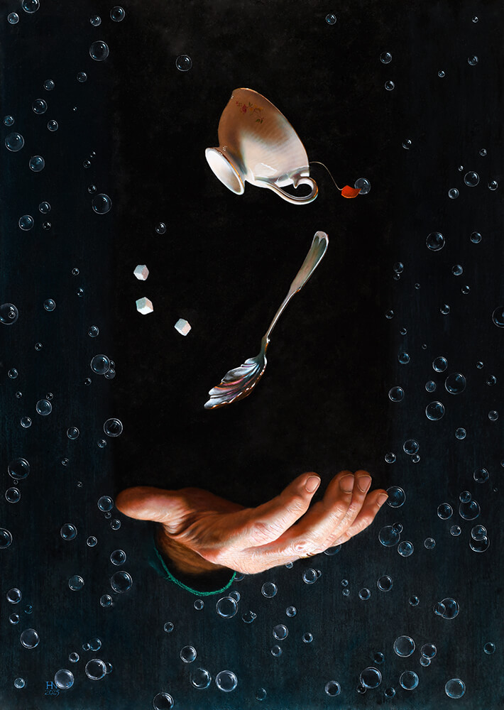 The powerful emotions of trust and fear incongruently balanced with the lightness and whimsy of bubbles.